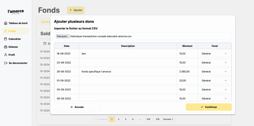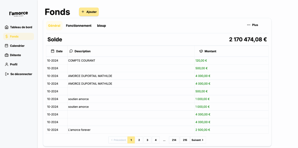L’Amorce is a custom-built web application designed to support the internal operations of a volunteer-run foundation.
