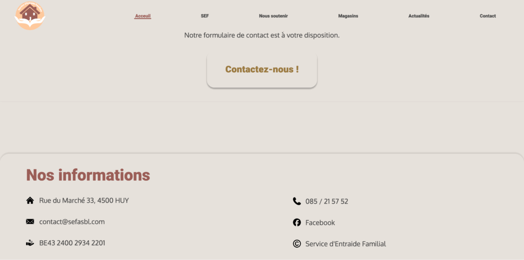 This project involves developing a website as part of the Web Design course for SEF Huy, a non-profit organization that provides assistance to homeless individuals in the Huy region.